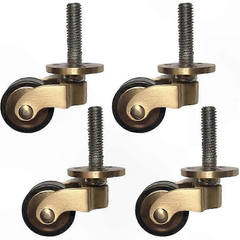 Sturdy furniture casters with high hardness, designed to prevent floor damage. Features include 360-degree rotation, quiet operation, wear resistance, smooth rolling, strong load capacity, stability, and safe use. Retro style with traditional craftsmanship, emphasizing simplicity and clean lines for enhanced beauty and practicality. Suitable for various applications including piano legs, sofas, Chinese-style furniture, European-style furniture, and retro furniture.<br> Specifications:<br> - Name: Brass casters<br> - Material: Brass + iron screw + rubber<br> - Wheel diameter: 2.5 cm<br> - Total height: 6 cm<br> - Mounting plate diameter: 2.8 cm<br> - Mounting plate thickness: 3 mm<br> - Screw length: 2.8 cm<br> - Screw diameter: 7.4 mm<br> - Total load capacity: 150 kg<br> Package includes: 4 casters<br> Note:<br> - Manual measurement may result in a size deviation of 1–2 mm.<br> - Monitor calibration differences may cause slight color variations between the product image and the actual item.