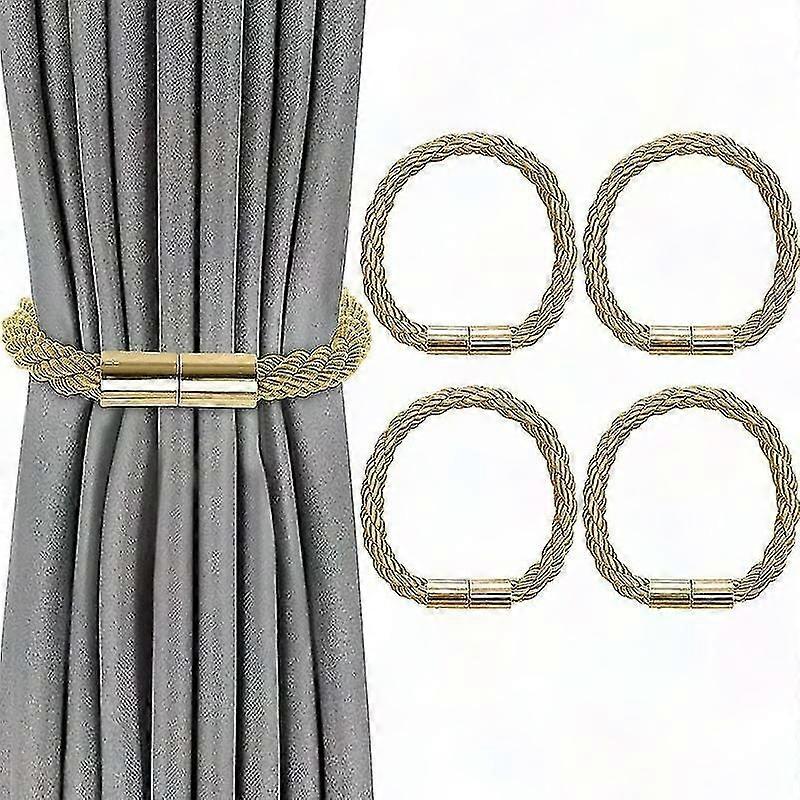 4-Pack Magnetic Curtain Tiebacks, Gold Braided Buckle for Home & Office Decor