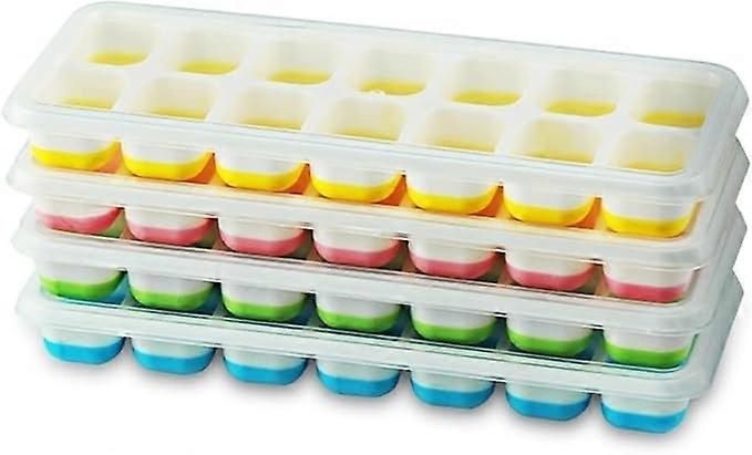 4 Pack Silicone Ice Cube Trays with Lid, Space Saving and Stackable, LFGB Certified and BPA Free, Sq