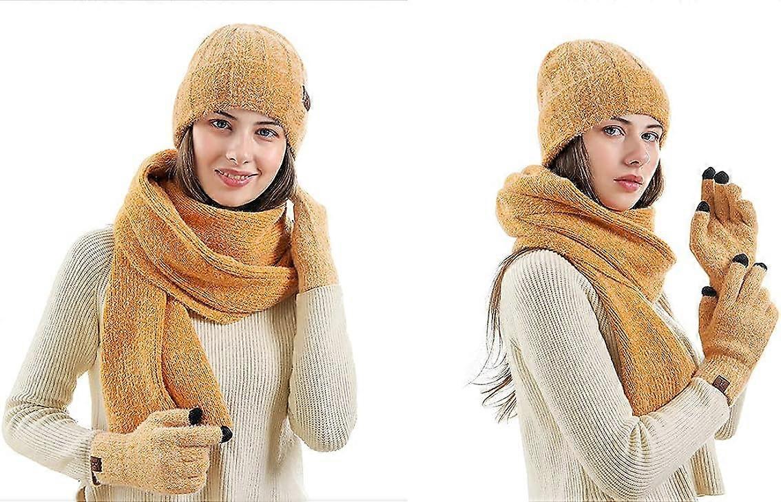 4 in 1 Cold Weather Winter Hat Scarf Gloves Set, Soft Knitted Touch Screen Gloves & New Year Valentine Gift for Women