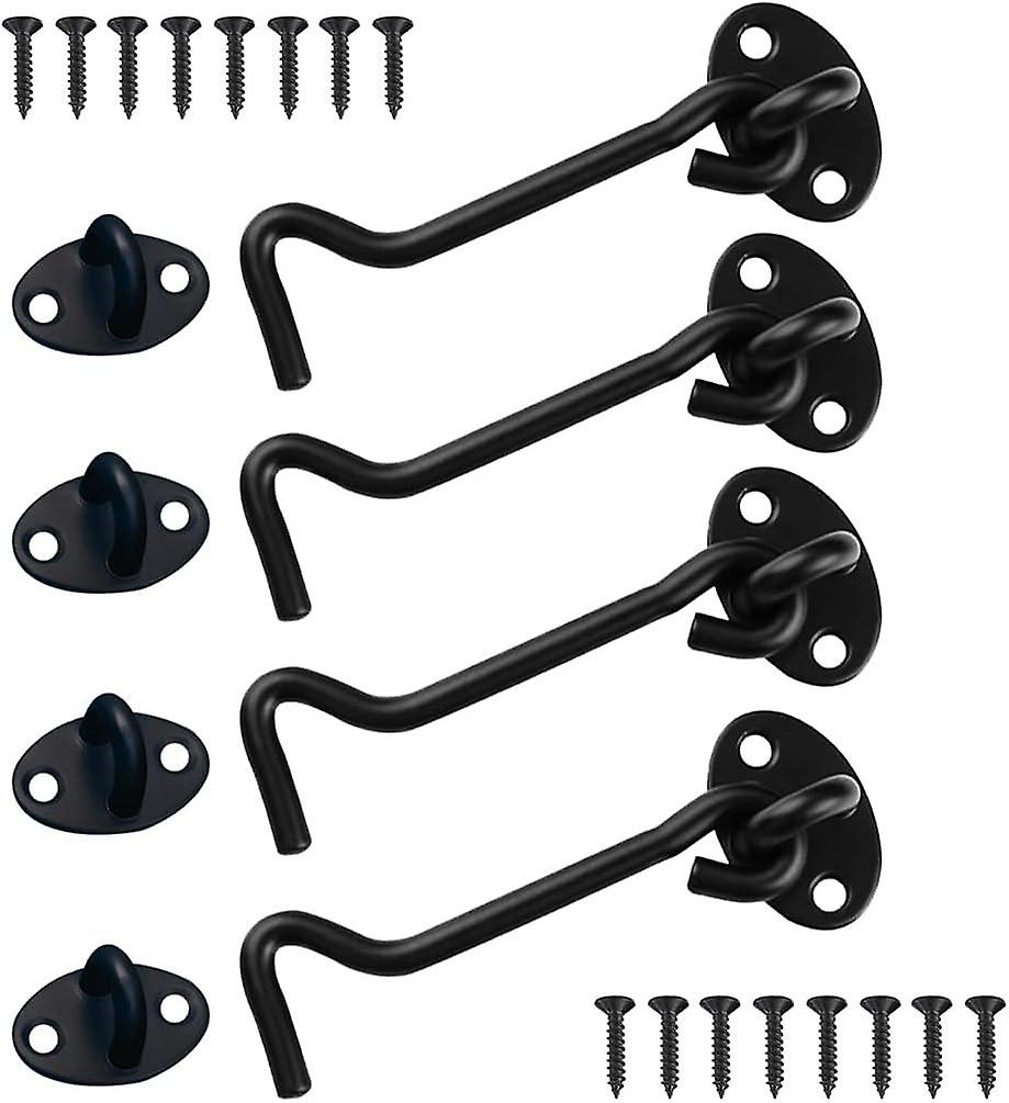 4 Piece Cabin Hook, Door Latch Hook, 4 inch Stainless Steel Door Latch, Gate Lock for Locks Barn Doo