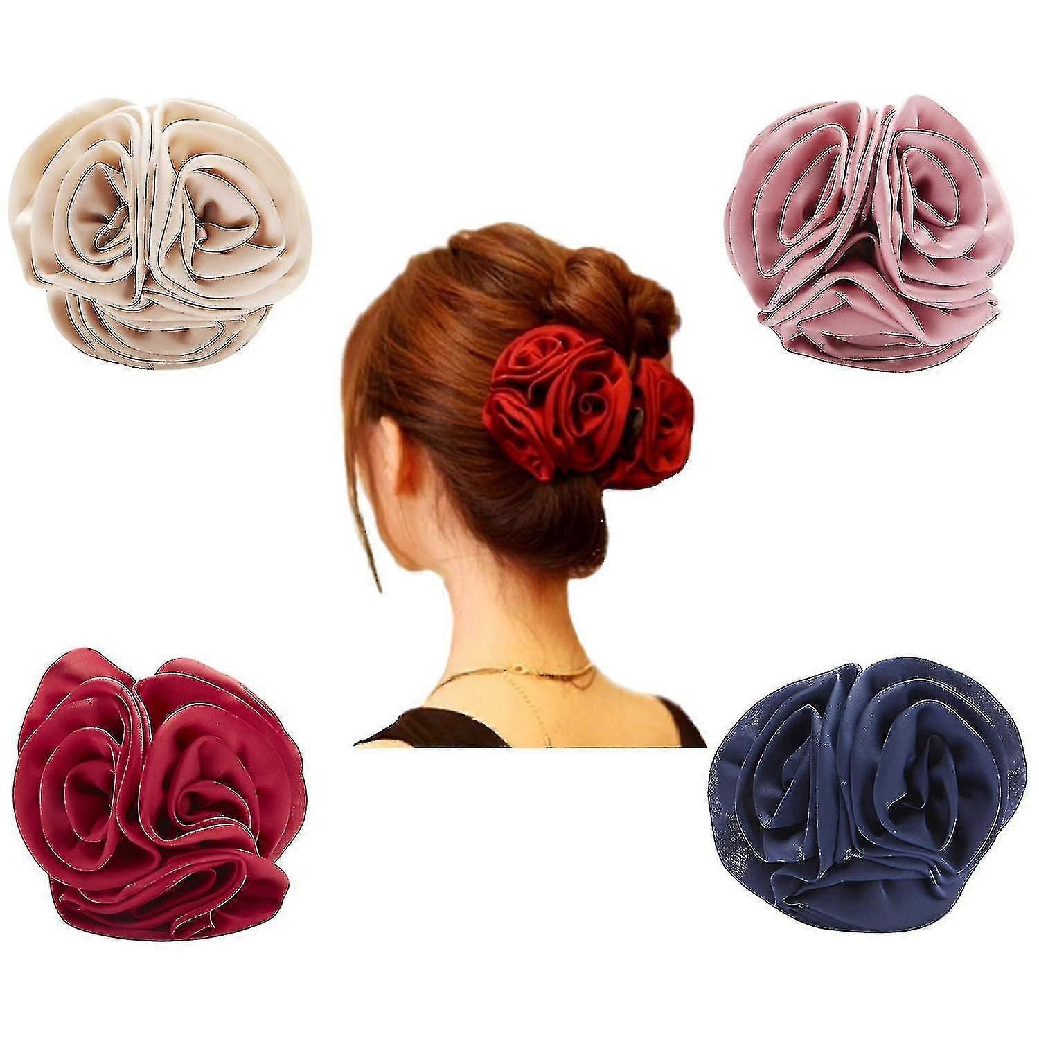 4pcs Silk Rose Hair Clips Twist Hair Fancy Accessories For Women Girls