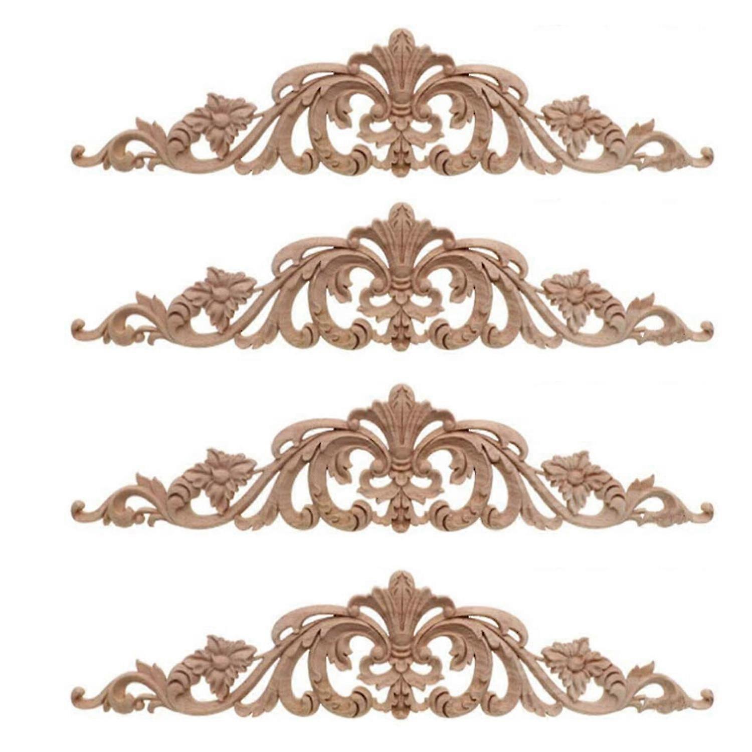 4Pcs Wood Carving Decal Wood Carved Furniture Appliques Onlay Applique Furniture Home Door Decor DI