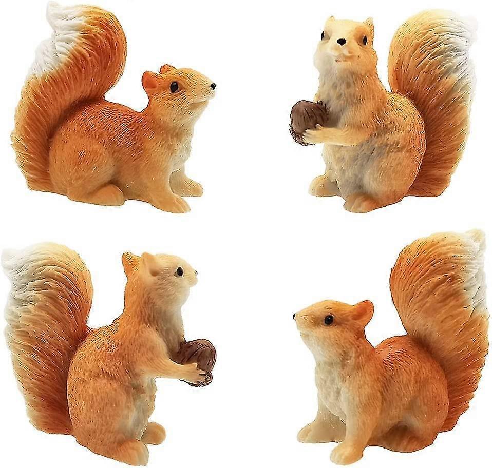 4pcs Squirrel Figures Animal Toy Cake Toppers, Fairy Garden Miniature Squirrel Figurines Collection Playset For Christmas Birthday Gift Desk Decoratio