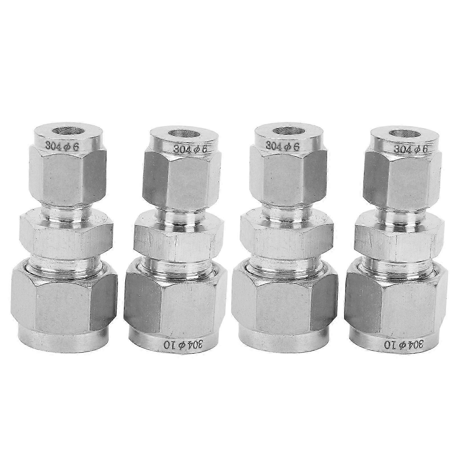 4Pcs Ferrule Compression Fitting 2‑Touch Straight Bulkhead Connector 304 Stainless SteelФ6x4
