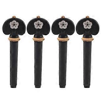 4Pcs Violin Tuning Peg HandCarved Flower Ebony Wood Musical Instruments Accessories(White Shell )