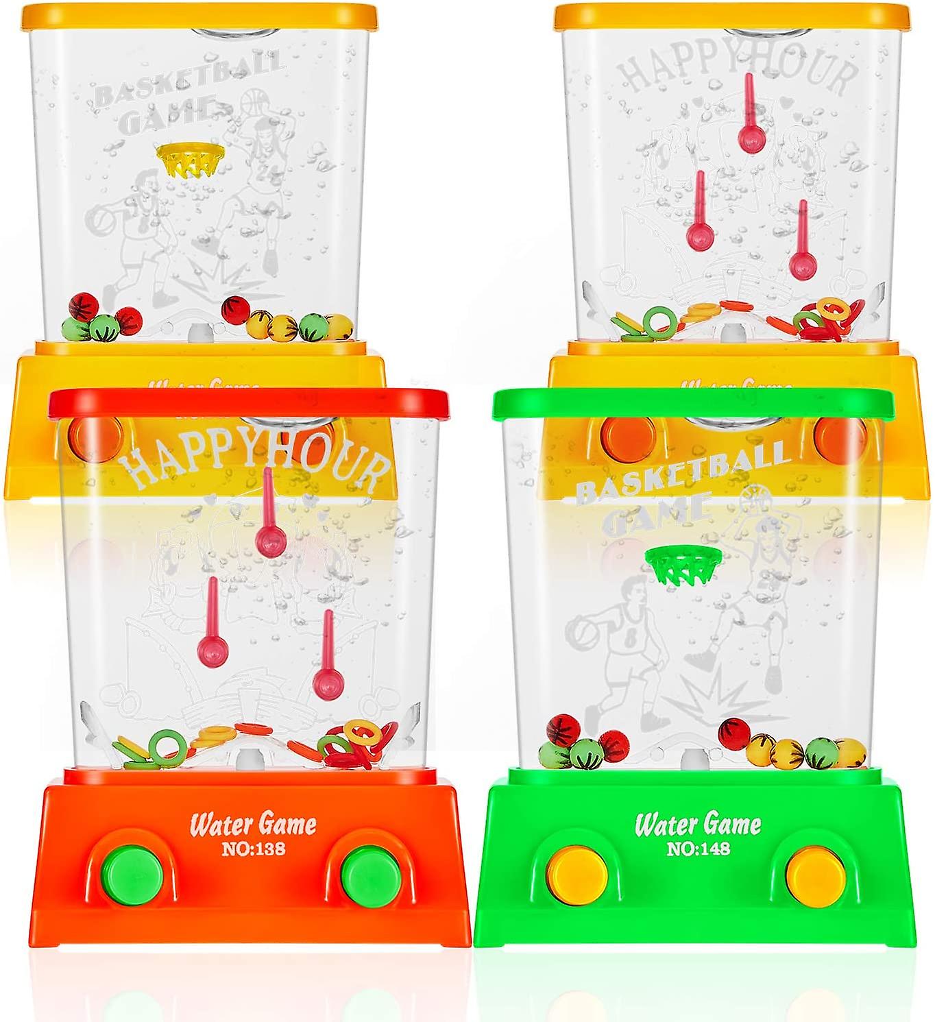 4 Pieces Handheld Water Game Arcade Water Ring Water Tables for Beach Toys Party Favor Fish Rings Fun Game for Different Ages Basketball Fun Gifts for Men Retro Pastime,(Chic Style)
