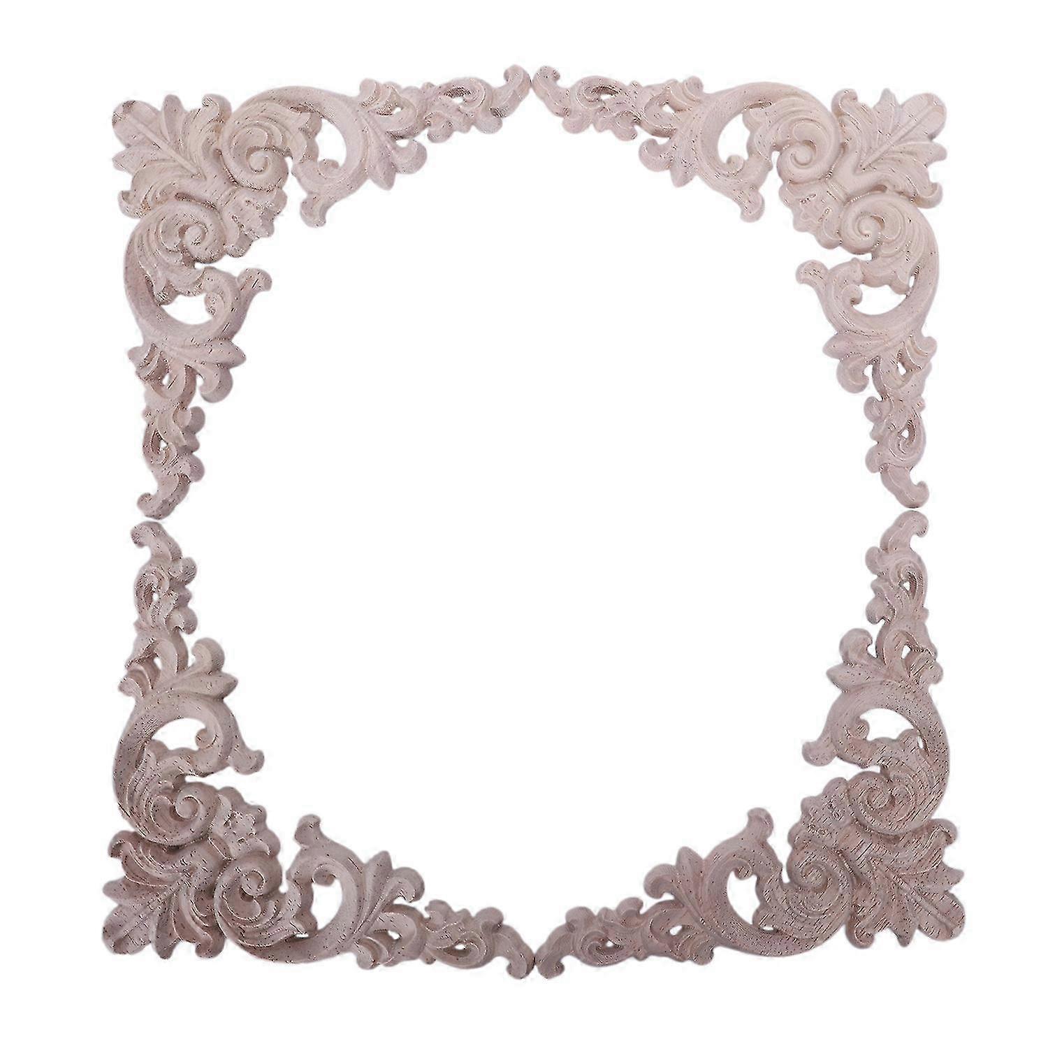 4pcs Rubber Wood Oak Carved Corner Onlay Applique Furniture Home Door Decor DIY