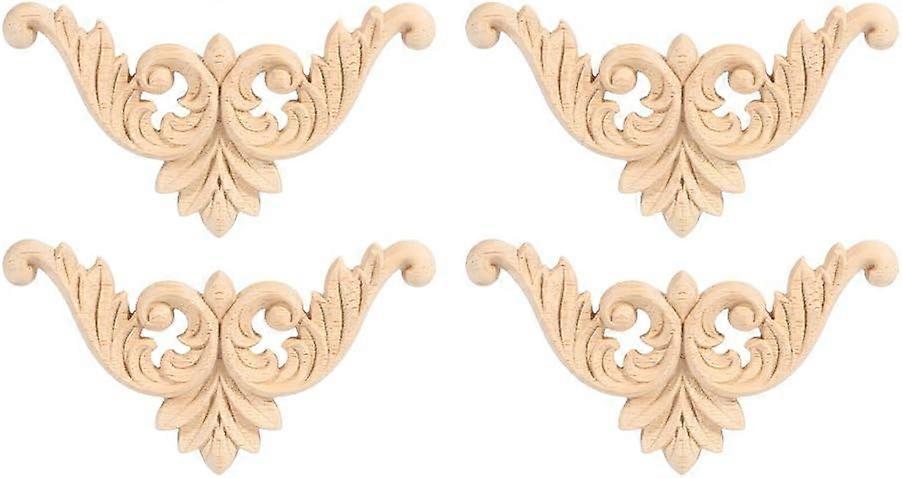 4PCS Rubber Wood Carved Decal Unpainted Onlay Applique Furniture Corners Home Door Decoration(8 * 8cm)