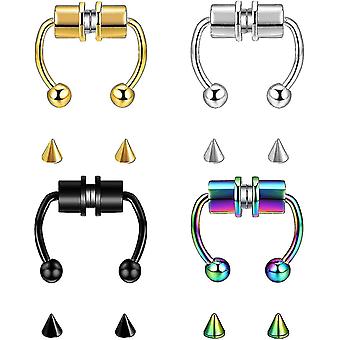 4 Pcs Magnetic Septum Nose Ring Stainless Steel Magnet Fake Septum Nose Ring
