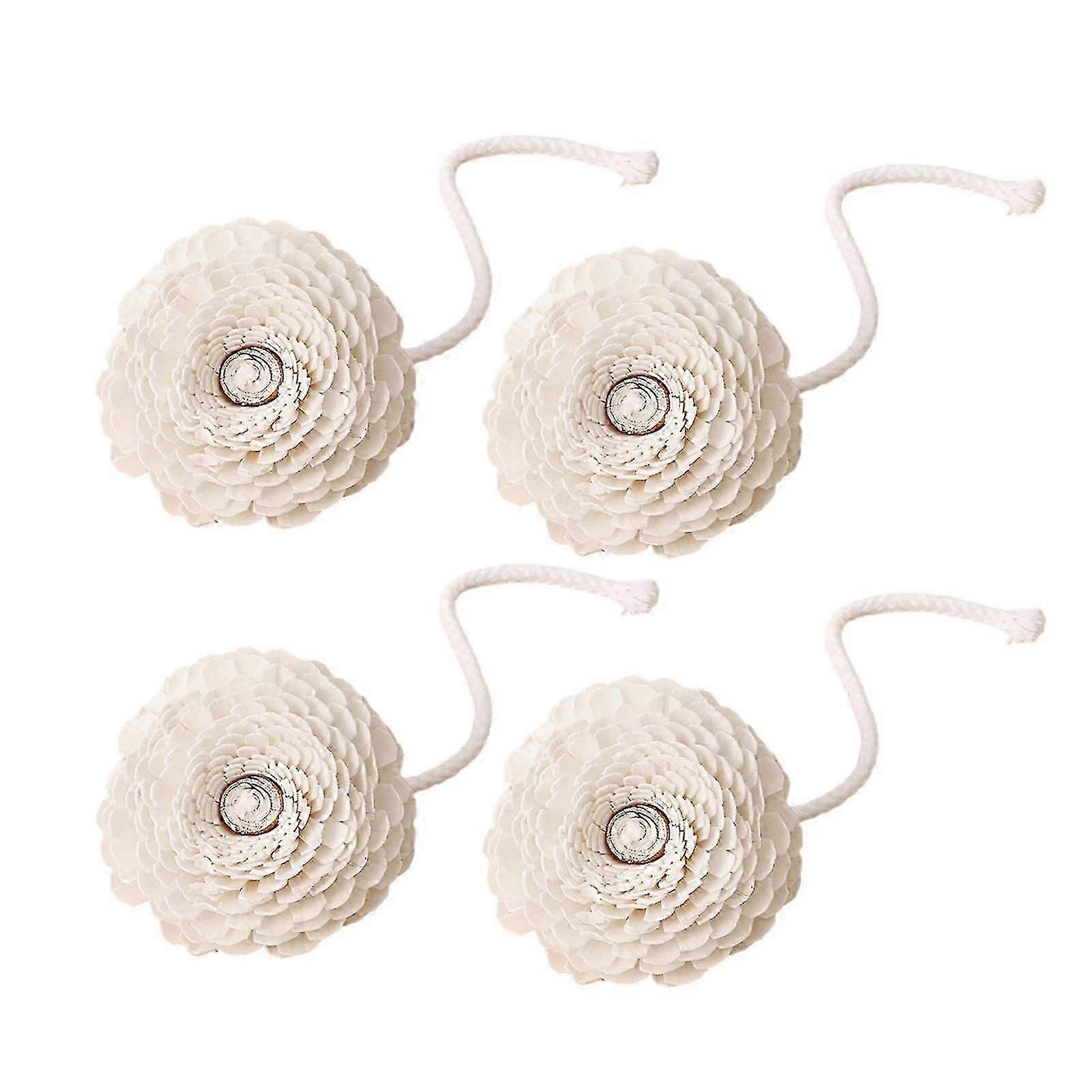 4Pcs Diffuser Flower with Cotton Thread Wood Rose Flower Fireless Aromatherapy Essential Oil Aroma