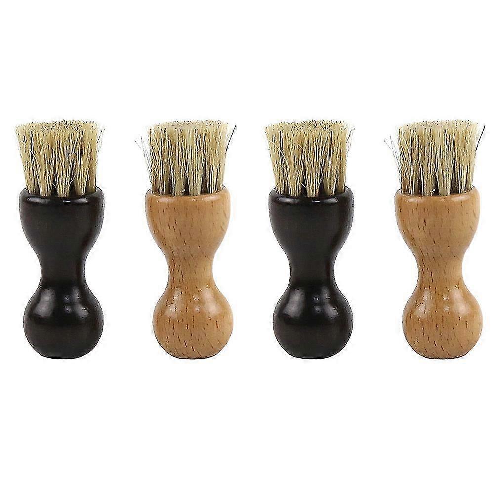 4Pcs Wooden Shoes Brush Multi-function Shoes Brush Shoes Cleaner Black Khaki7.6X2.1CMBlack