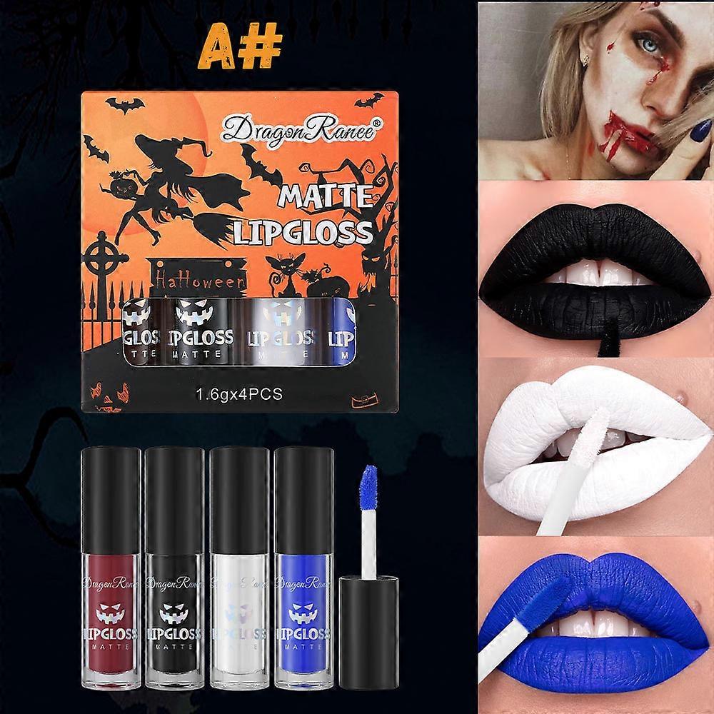 4PCS Liquid Lipstick Halloween Fake Blood Makeup Kit for Adults Smudge Proof Lip Gloss Long-lasting Lip Stain Suitable for Halloween Goth Makeup