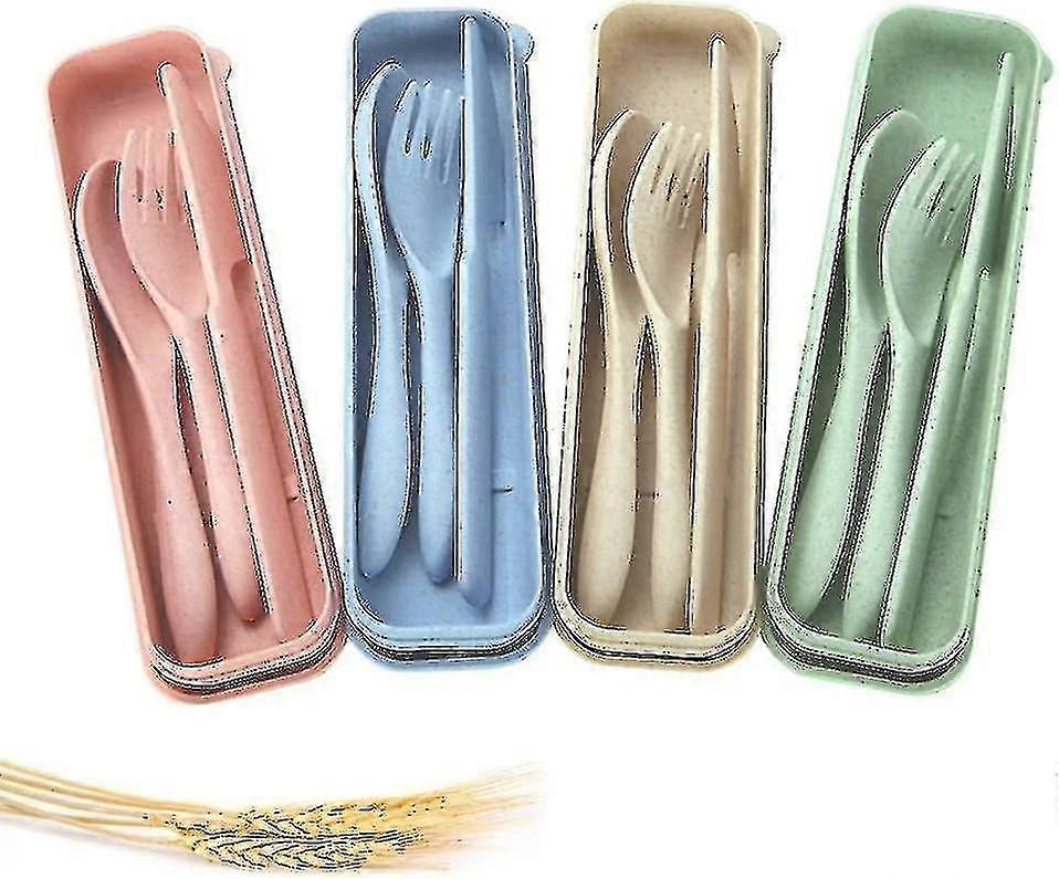 4-piece Portable Cutlery, Wheat Straw Cutlery, Spoon Cutlery Set, Suitable For Children And Adults Travel Picnic Camping