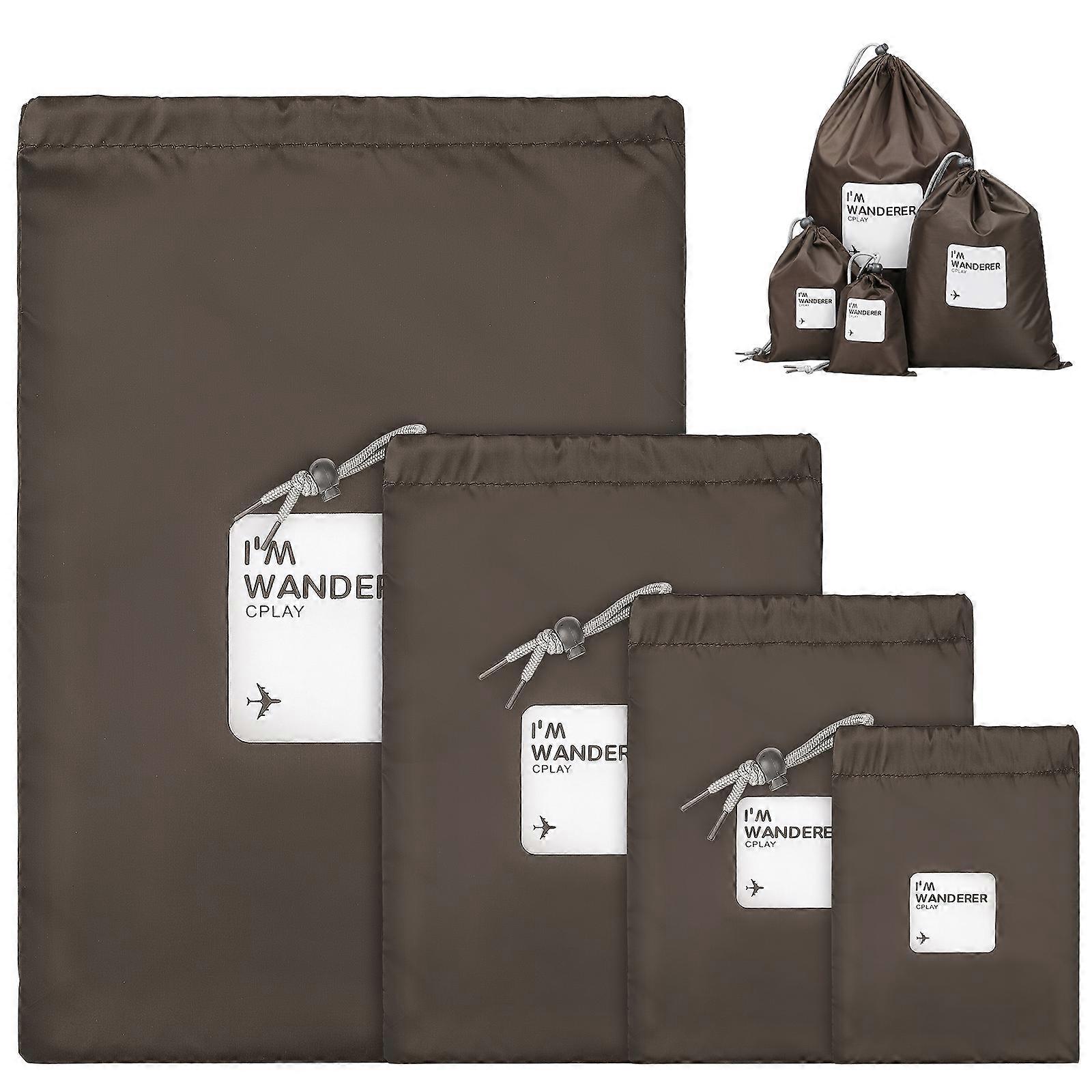 Description Organized and space-saving, keep your different travel items separate with these drawstring storage bags. Store tops, pants, underwear, shoes, socks, toiletries, chargers, and more, then put them in making the most of the space in your suitcase to organize storage to save time on your business trips, or outdoor camping activities. Features - Material: Nylon- Color: Coffee- Size S: 15.00x10.50cm/5.91x4.13inches- Size M: 20.50x14.50cm/8.07x5.71inches- Size L: 25.00x21.50cm/9.84x8.46inches- Size XL: 42.00x29.00cm/16.54x11.42inches- Premium fabric: Made of nylon fabric, high performance ensures that these organizer bags can withstand high-density wear during travel and last long.- Great value travel storage bag set: Includes drawstring organizers of different sizes to store your lightweight thin t-shirts, pants, underwear, shoes, hats, and more.- Fine details: These travel bags are stylish, lightweight, waterproof, and easy to open and close with a drawstring design.- Travel conveniently: Easily put all the organizers in your suitcase to make the most of your space for short or long trips.- Multifunctional design: Besides traveling, you can also use these storage bags individually, and use different size bags to gym, beach, go camping,or yoga according to your actual needs.Packing list: 4 x Drawstring Storage Bags