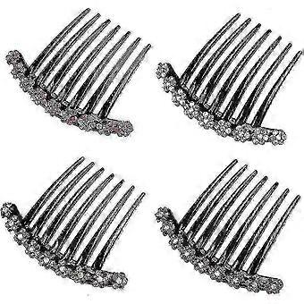 4pcs Non-Slip Rhinestone Hair Combs with Plastic Teeth, Comfortable Side Hair Clips for Styling