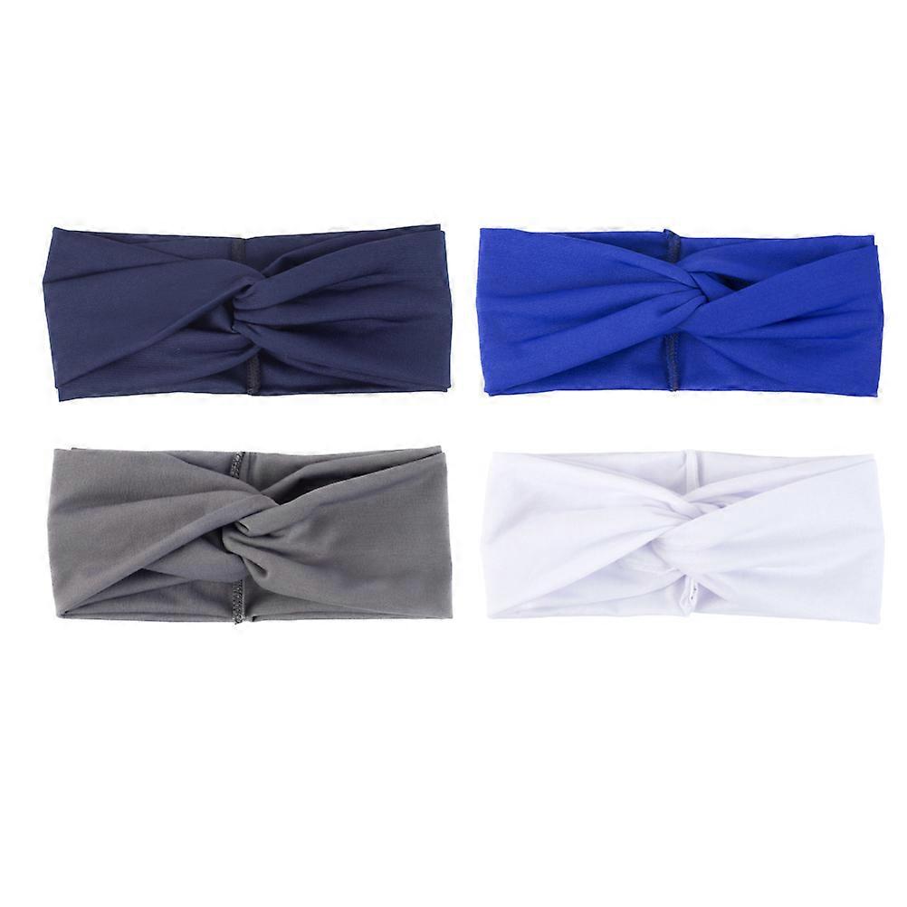 4pcs Elegant Solid Color Stretch Headwraps for Women – Comfortable Hair Accessories for Outdoor & Everyday Wear – White, Dark Grey, Navy, Royal Blue