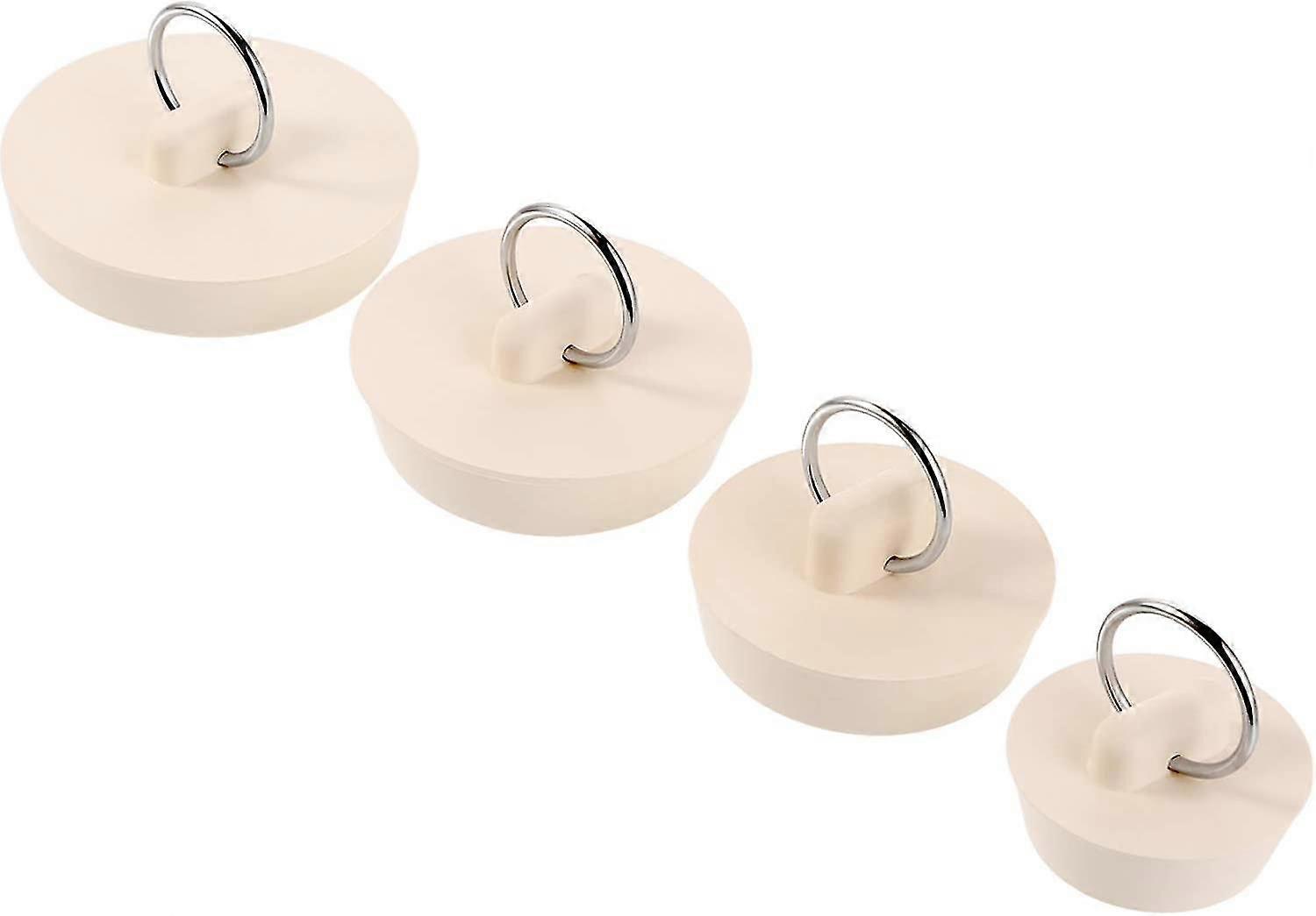 4 Pieces Drain Plug Set Rubber Sink Plug Stopper With Hanging Ring For Bathtub, Kitchen And Bathroom, 4 Sizes, White
