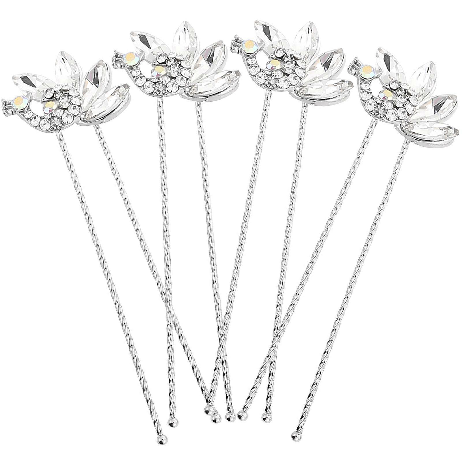 4pcs Rhinestone U Shaped Hairpins for Wedding Brides Bridesmaids Lightweight Elegant Bobby Pins Bohemian Rustic Style