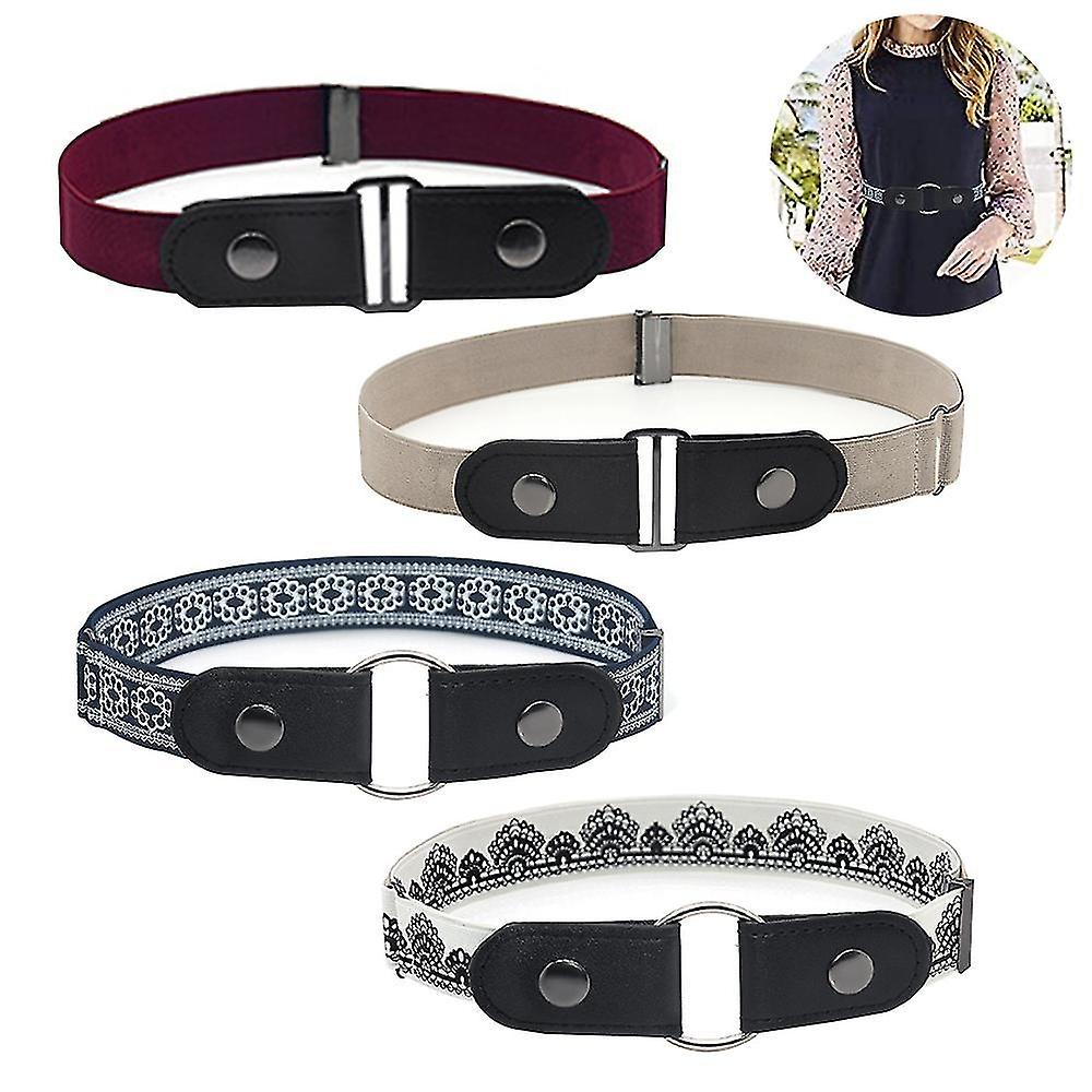 4 Pieces Buckle Free Adjustable Belt, No Buckle Invisible Elastic Belt