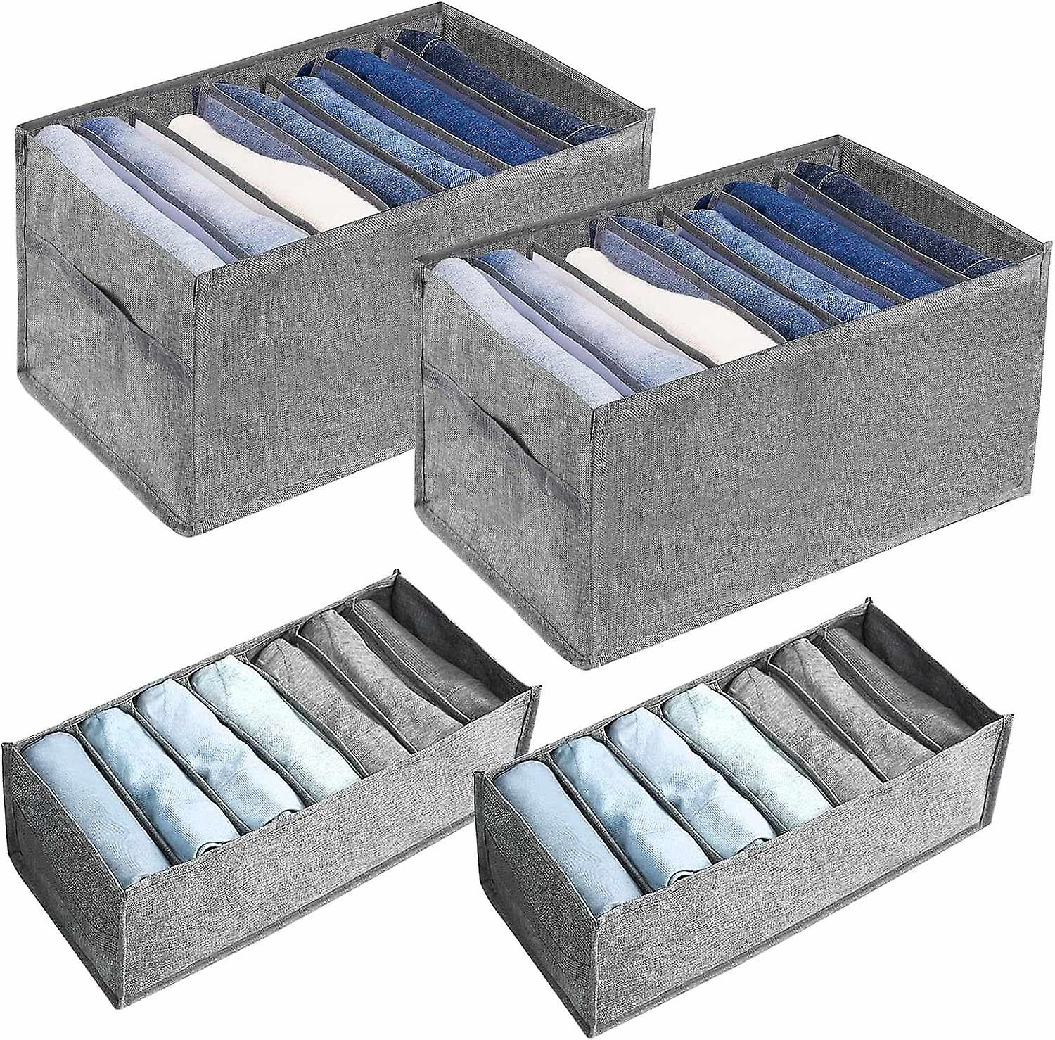 4 Pcs Wardrobe Clothes Organizer, 2 Sizes Foldable Clothes Drawer Organizer, Clothing Storage Bins w