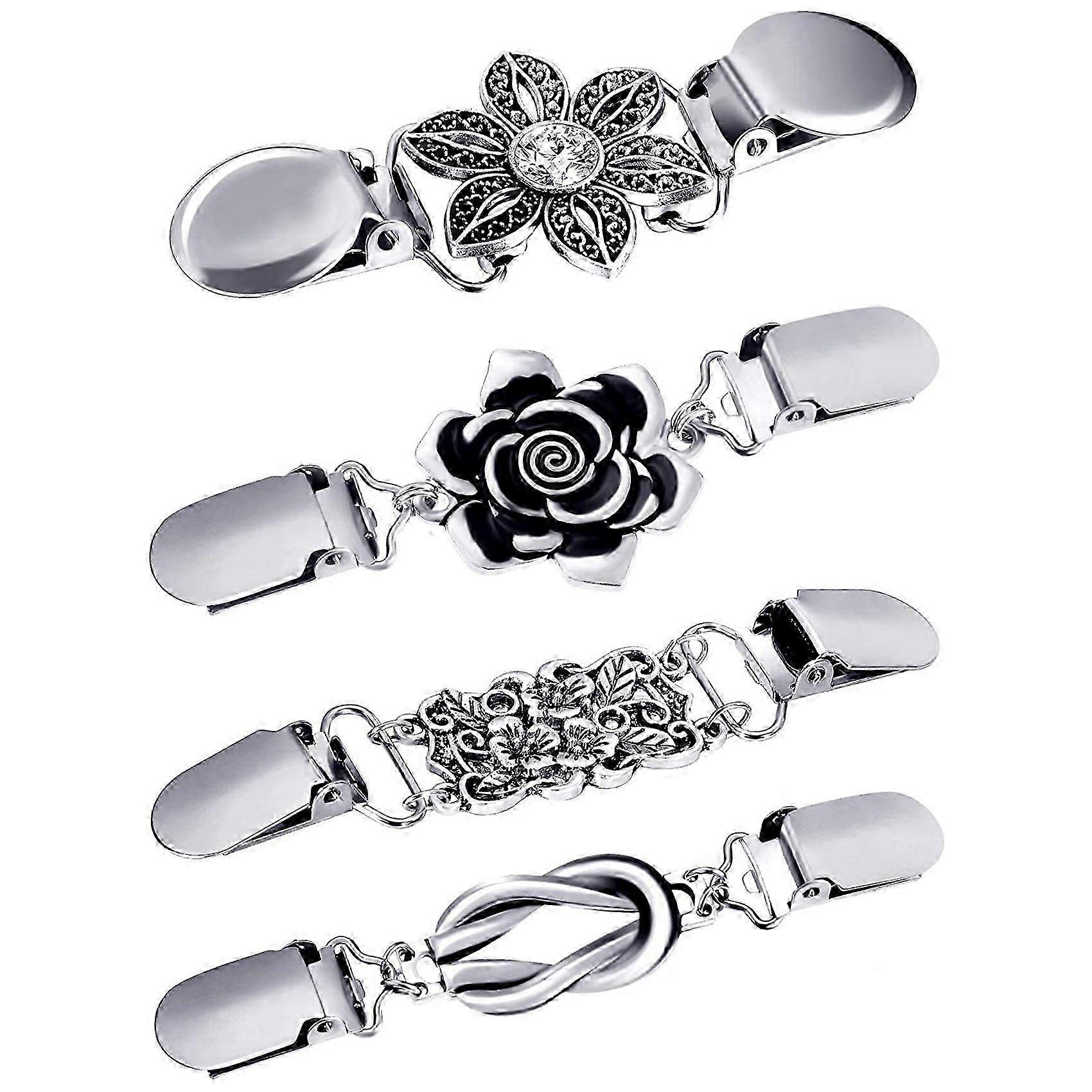 4 Pieces Vintage Sweater Shawl Clips Retro Cardigan Collar Clips Dress Shirt Brooch Clips for Women