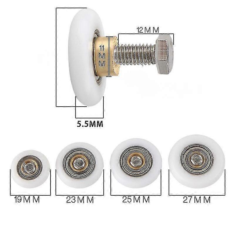 Shower Door Rollers/Wheels ModelFeatured in Many Different Makes and Models of Steam Shower, Shower Cabins, Whirlpool Showers, Shower Enclosures, Shower Units and Shower CubicLe Product use: used for bathroom translation glass doors Product material: nylon wheel plate+copper core shaft Product specifications: 20mm, 23mm, 25mm and 27mm in diameter