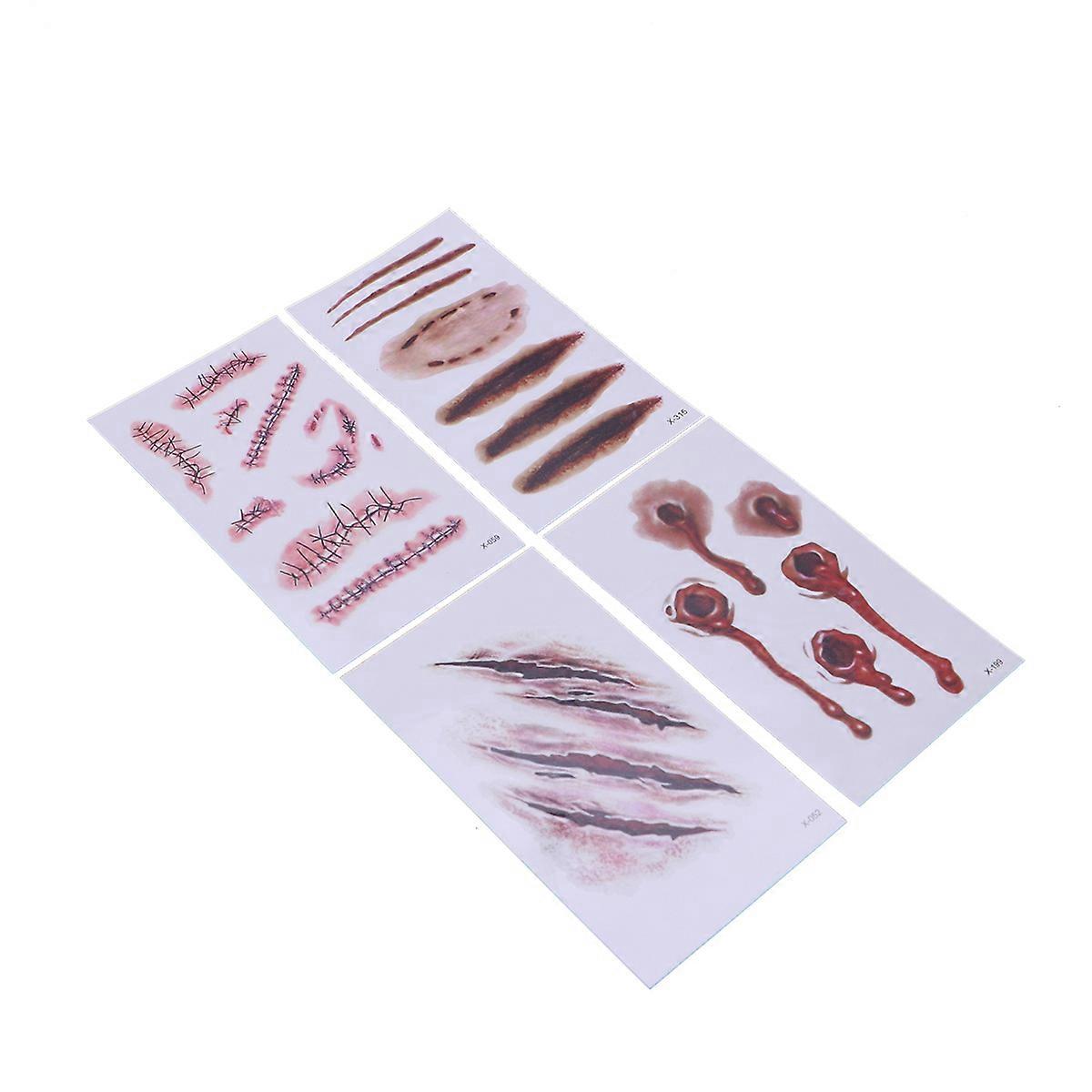 4PCS Horror Realistic Fake Bloody Wound Stitch Scar Scab Temporary Sticker Halloween Masquerade Prank Makeup Props