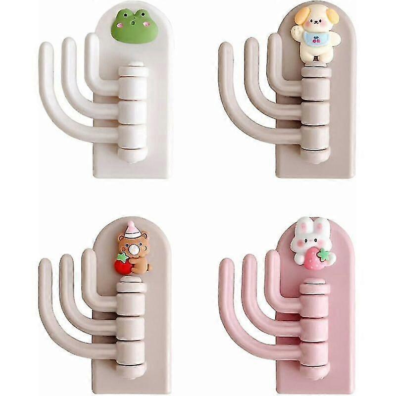 4 Pieces Children's Coat Rack, 3 In 1 Children's Animal Coat Rack Plastic Wall Hook, Multifunctional Children's Wall Hook Adhesive Hook For Keys Kitch