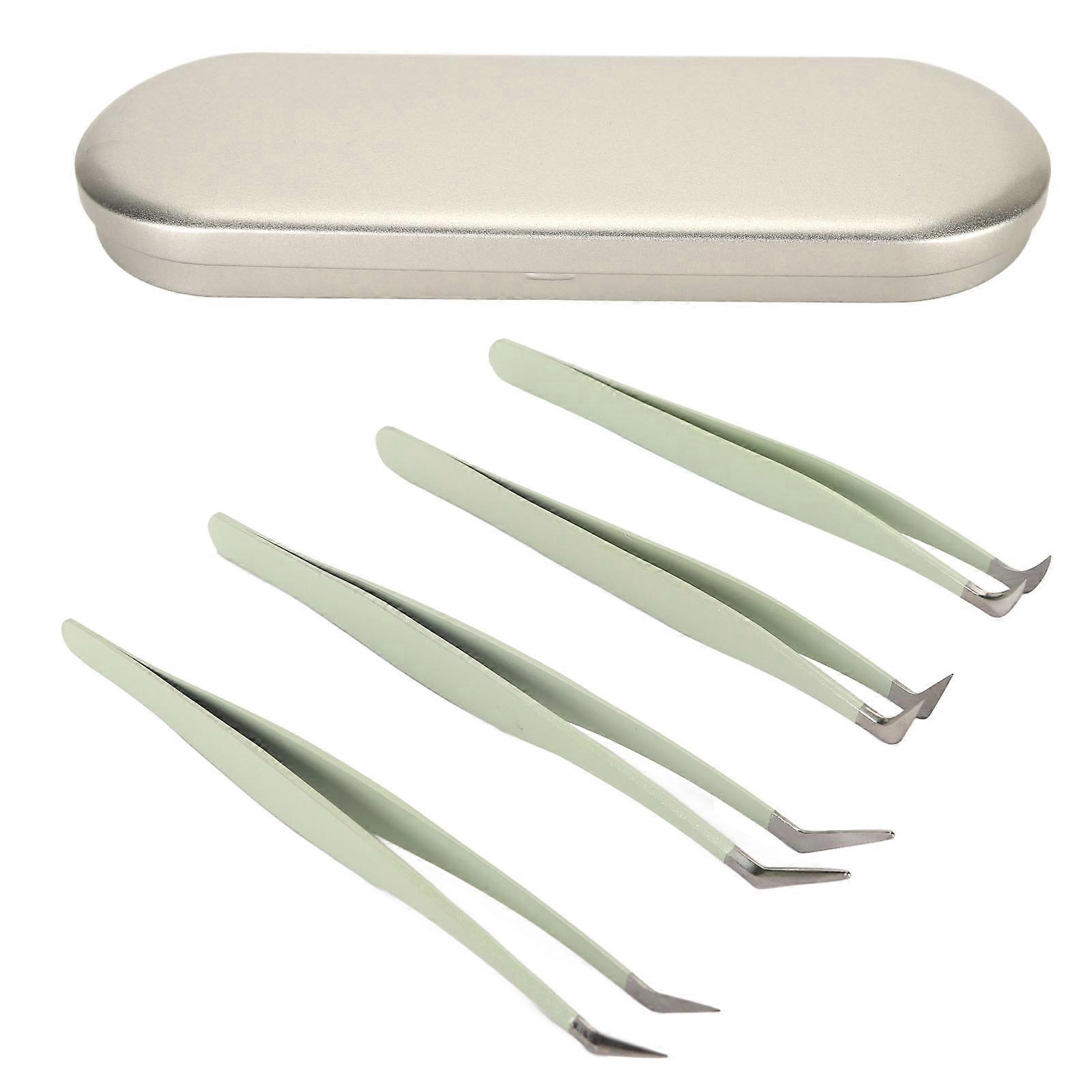 4Pcs Eyelash Extension Tweezers Stainless Steel Elastic Ergonomic Lash Tweezers with Storage Box for Home Salon