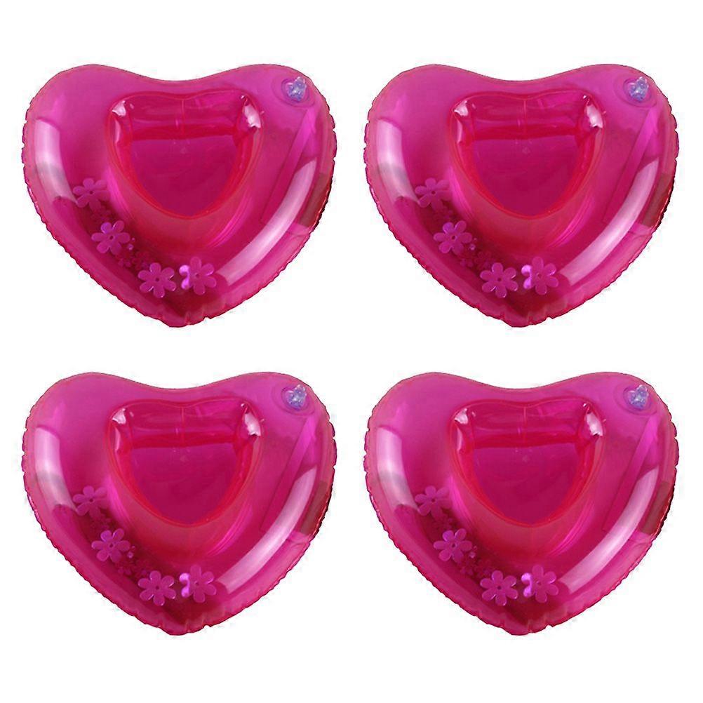 4pcs Rosy Inflatable Heart Shape Coasters Drink Cup Holder Beach Floating Drink Holder Summer Party Favors