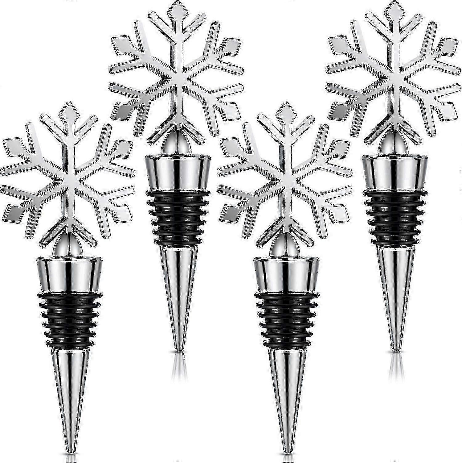 4-Piece Snowflake Wine Stoppers for Christmas Beverage Bottles