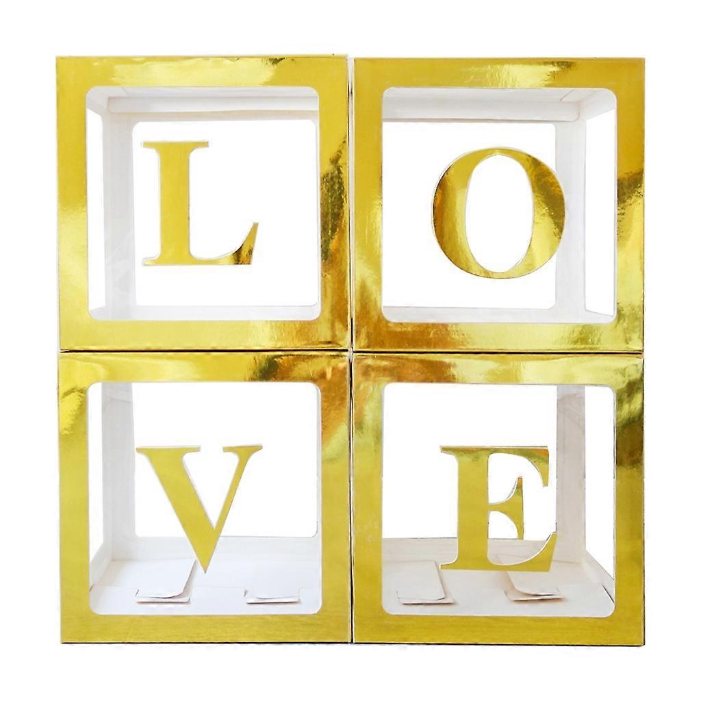 4pcs Love Boxes with Letters for Wedding Baby Shower Blocks Clear Box Set Gift