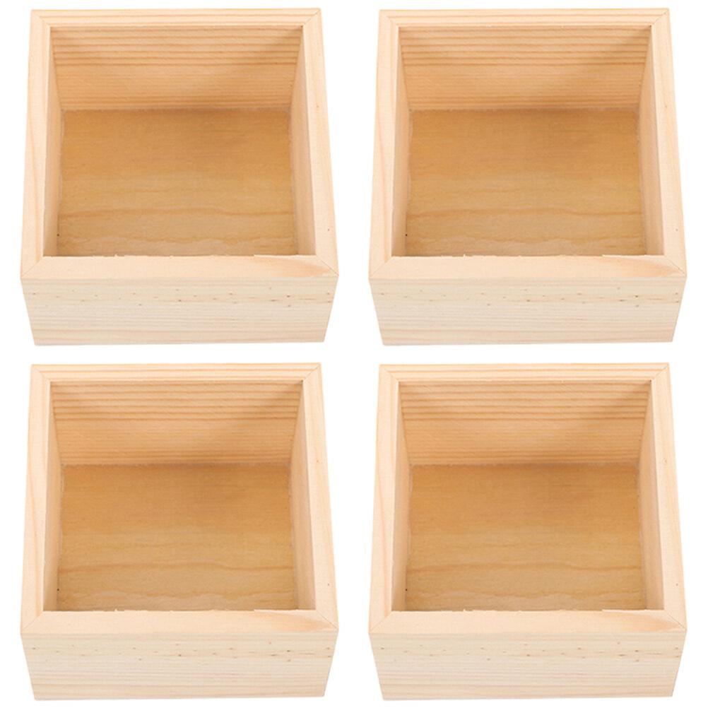 4Pcs Wooden Boxes Lidless Wooden Boxes Tabletop Wood Boxes Small Square Wooden Boxes