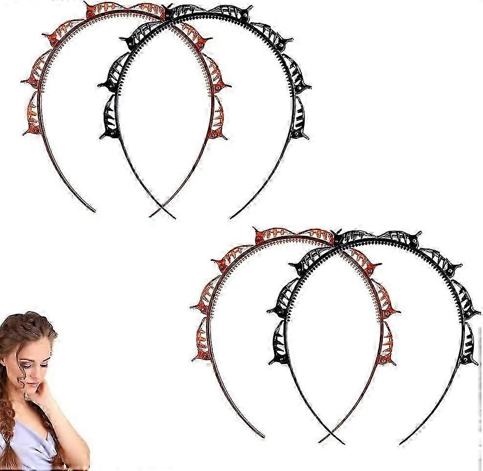 4 Pieces Headband with Clips,Double Bangs Hairstyle Hairpin,Bangs Hairstyle Hair Hoop,DIY Headband with Clips for Women,Kids,Men,Daily Activities(Blac