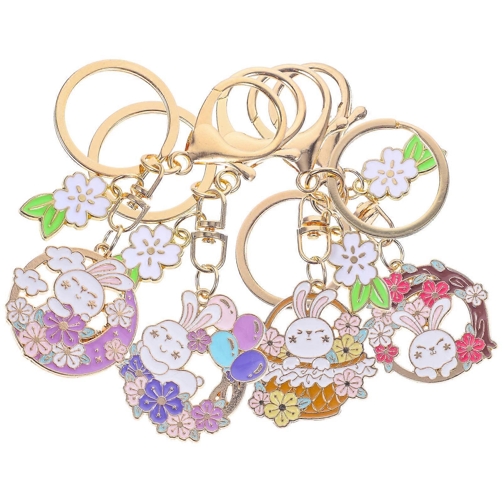 4pcs Easter Bunny Key Chains Easter Key Pendants Lovely Bag Hanging Ornaments Lovely Bag Pendant