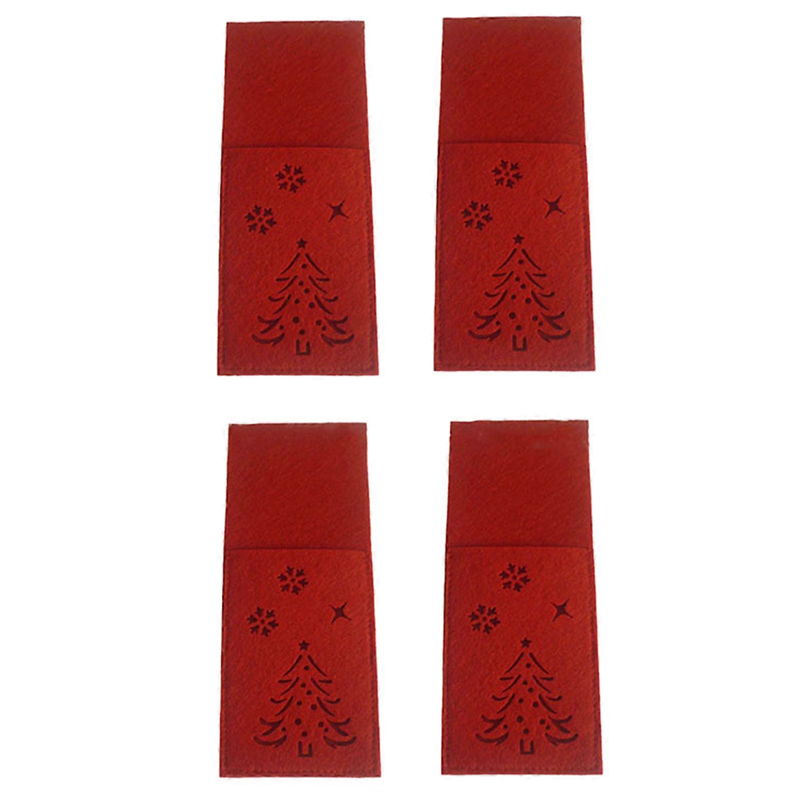 4Pcs Christmas Cutter Fork Holder Square Christmas Tree Snowflake Hollow Pattern Pocket Cutlery Bag Cloth Cookware Organizer Table Decor