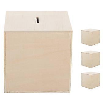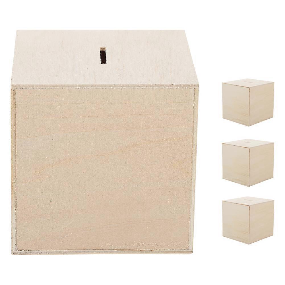 4pcs Unfinished Wooden Piggy Banks Kids DIY Coin Banks lovely Change Containers