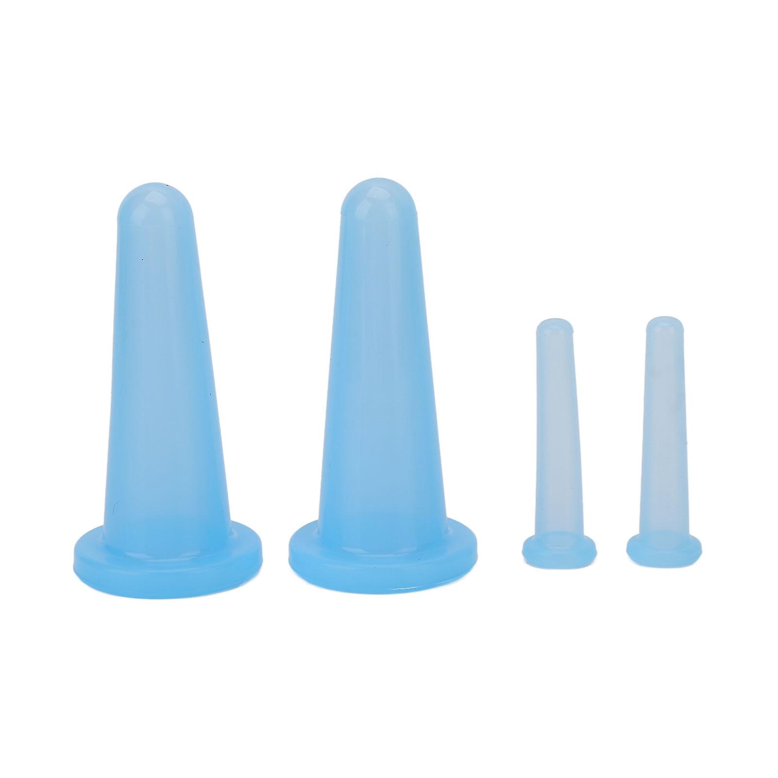 4pcs Vacuum Massage Cup Silicone Facial Suction Massage Cup For Home Use Cellulite Treatment Blue