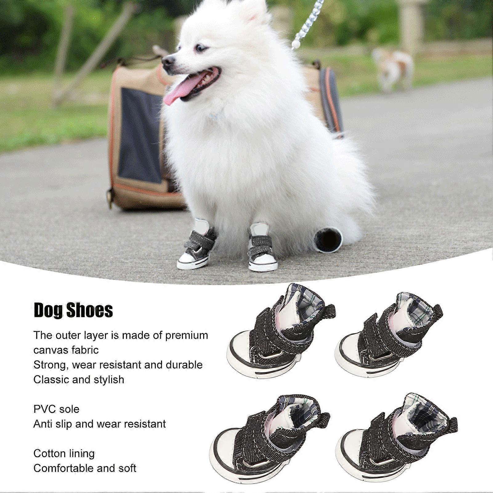 4pcs Canvas Puppy Shoes Fashion Cute All Seasons Breathable Slip Resistance Pet Sport Shoes for Small Dogs Pets 5#