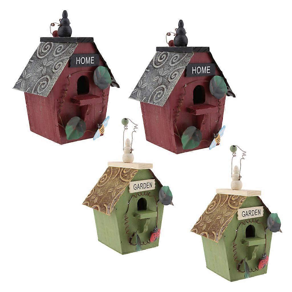 4 Pieces Country Cottage Wood Bird House Hanging Birdhouse Condo Garden A B