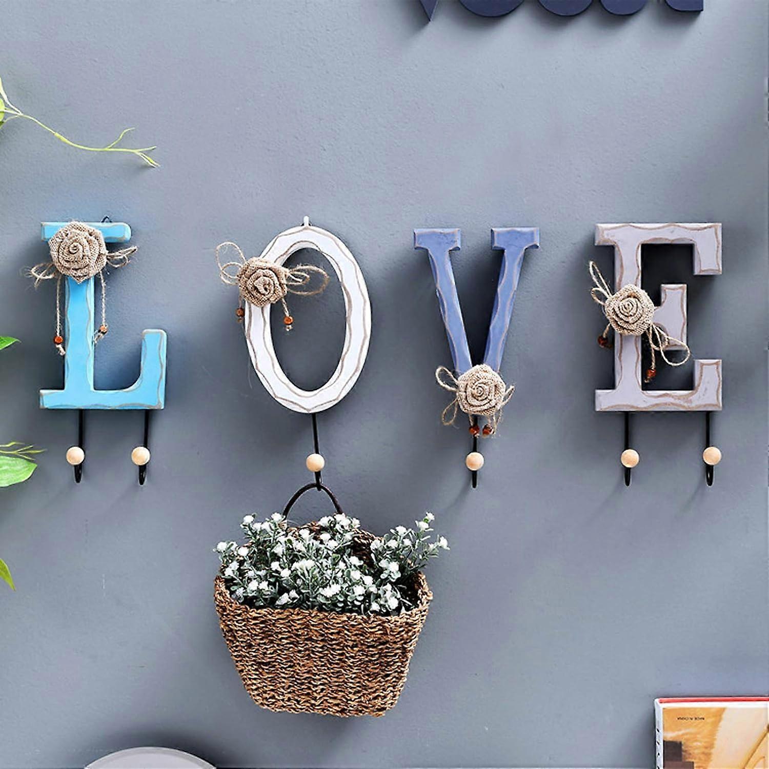 4 Pcs/Set Wall Mounted Hooks, Wooden Wall Hat Towel Organizer Hanger Entryway Coat Rack (LOVE)