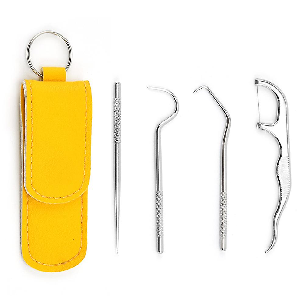 4 Pcs Toothpick Holder Set Portable Stainless Steel Oral Care Set Tartar Remover Tooth Cleaning Set with Tooth Probe Tweezers and Scaler