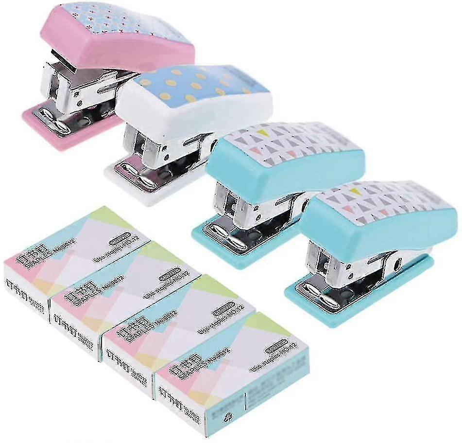 4pcs Mini Cute Stapler Set, Small Handy Stapler For Student Kid Gift, Stationery For Office Supplies, Built-in Staple Remover