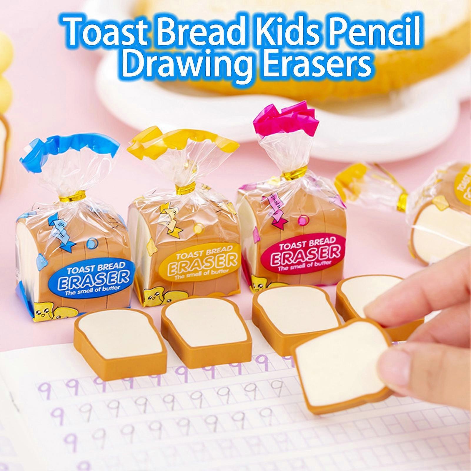 4Pcs/Set Pencil Erasers Cute Cartoon Realistic High Toughness Traceless Labor-saving Wipe Clean Christmas Gift Funny Toast Bread Kids Students Erasers