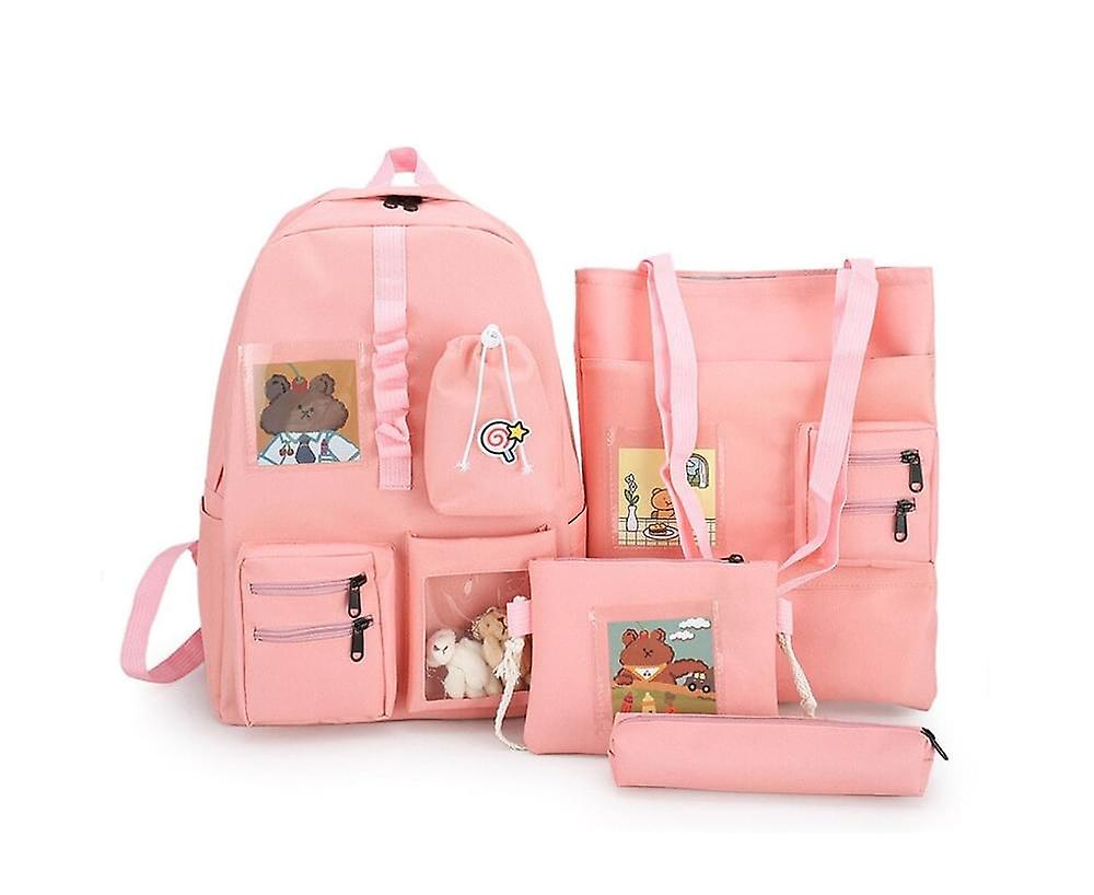 4 Pcs Set Harajuku Women Laptop Backpack Canvas School Bags For Teenage Girls Kawaii College Student Kids Book Bag Rucksack 2021