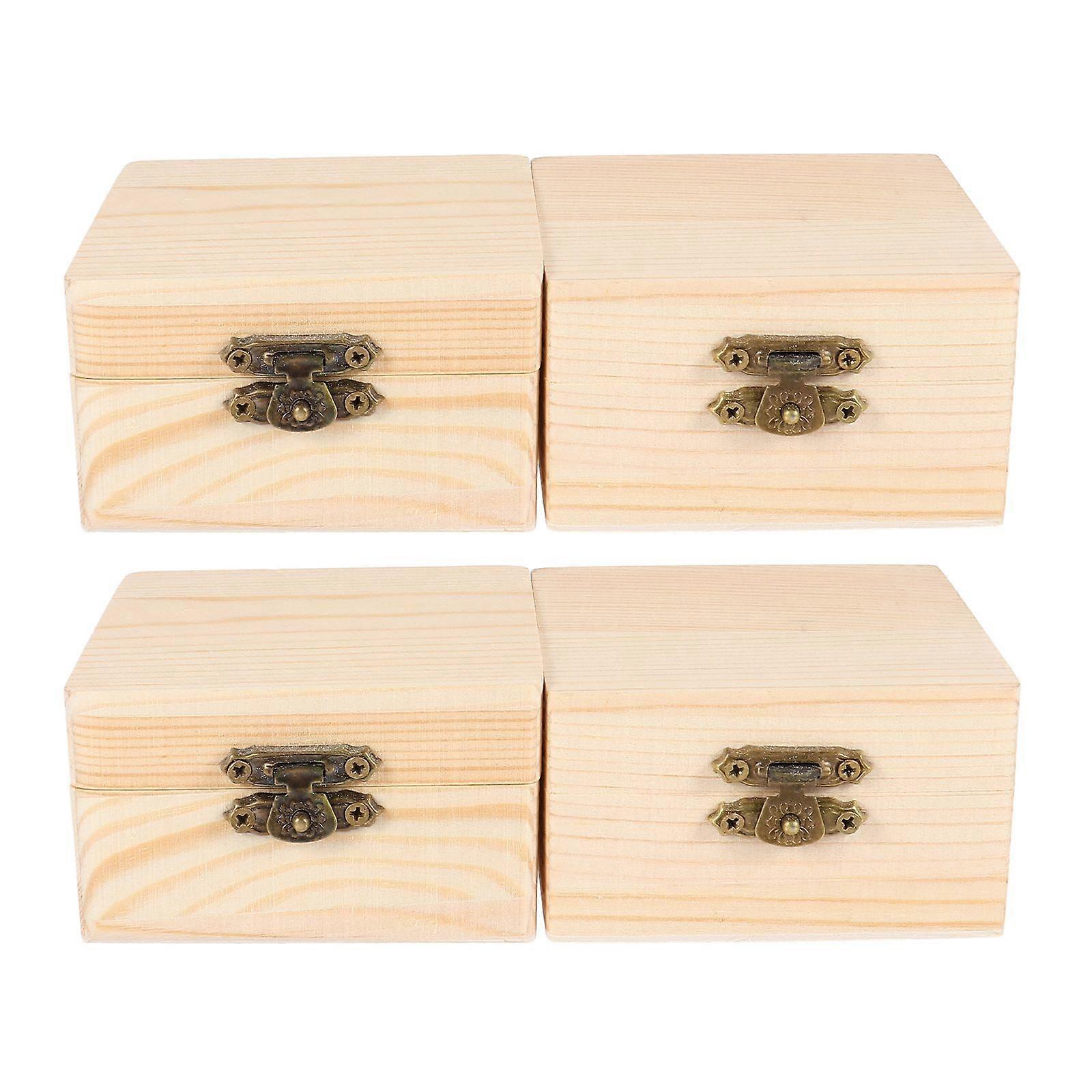 4pcs Square Wood High Grade Small Jewelry Gift Packing Boxes Wooden Storage Boxes