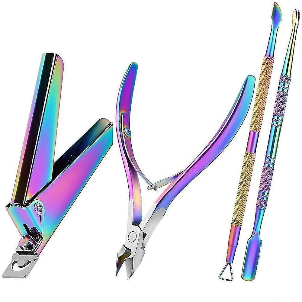 4 Pieces Nail Clipper Set, Stainless Steel Fake Nail Tips Clipper Trimmer With Cuticle Pusher, Nail Manicure Set For Salon Home Nail Art Manicure Tool