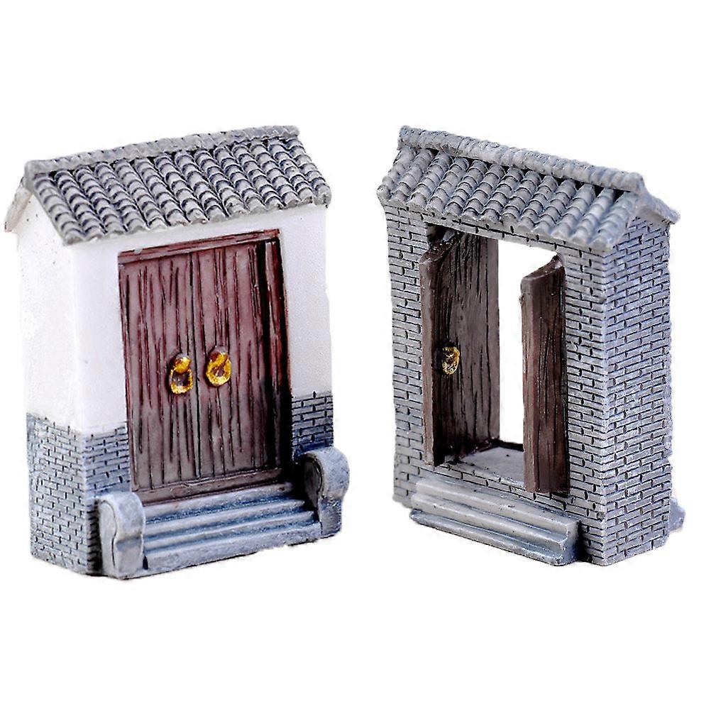 4pcs Mini Door Adornment Landscape Micro Door Ornament Courtyard Miniature Mixed Style