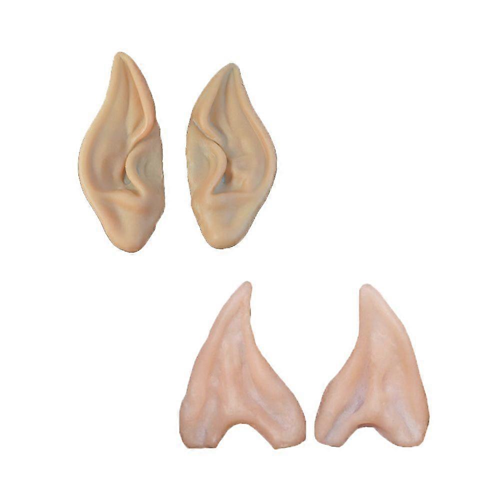 4pcs Funny Artificial Ear Cosplay Props Performance Accessories Party Supplies (Pointy Elf Ears + Half Elf Ears, 1 Pair Each)